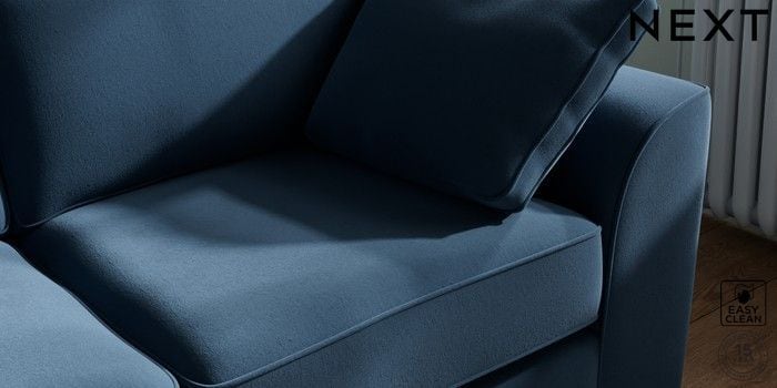 7.2.10 Buy Stamford Sofa Bed Plush Velvet Easy Clean Airforce Blue Large Square Angle - Brushed Brass from the Next UK online shop Click here to use our accessible website