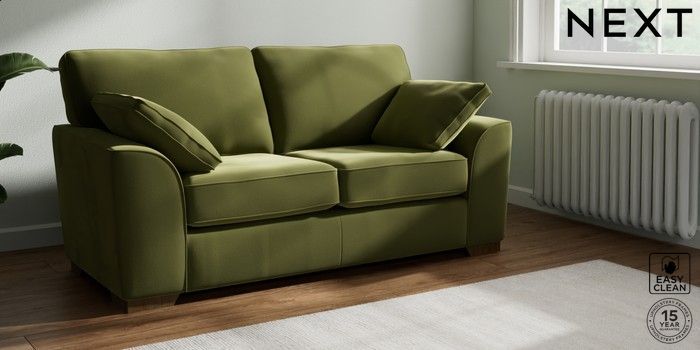 7.2.10 Buy Stamford Sofa Bed Plush Velvet Easy Clean Mid Olive Green Large Square Angle - Mid from the Next UK online shop Click here to use our accessible website