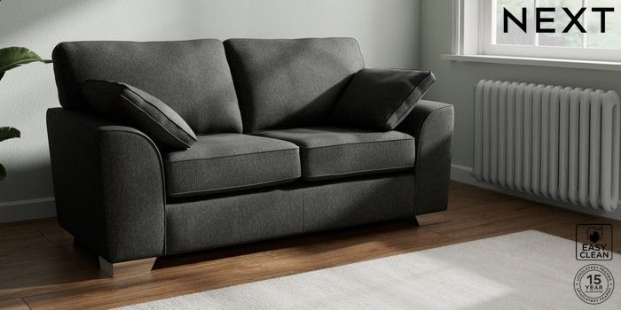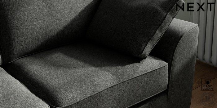 7.3.1 Buy Stamford Sofa Bed Tweedy Blend Easy Clean Charcoal Grey Large Square Angle - Chrome Metal from the Next UK online shop Click here to use our accessible website