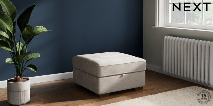 7.2.10 Buy Stamford Storage Footstool Chunky Chenille Oyster Square Angle - Mid from the Next UK online shop Click here to use our accessible website