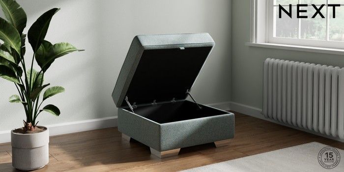 7.2.10 Buy Stamford Storage Footstool Chunky Marl Mid Blue Square Angle - Chrome Metal from the Next UK online shop Click here to use our accessible website