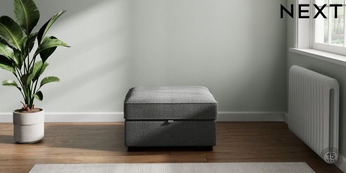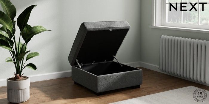7.2.10 Buy Stamford Storage Footstool Chunky Texture Dark Grey Square Angle - Dark from the Next UK online shop Click here to use our accessible website
