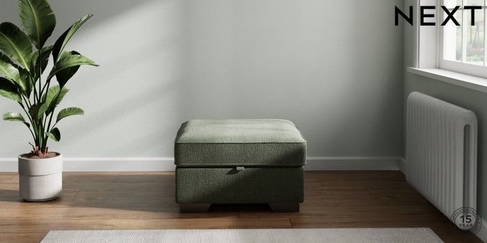 7.2.10 Buy Stamford Storage Footstool Chunky Texture Mid Forest Green Square Angle - Gunmetal from the Next UK online shop Click here to use our accessible website