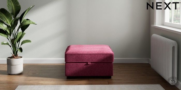 7.2.10 Buy Stamford Storage Footstool Cotswold Chenille Dark Raspberry Pink Square Angle - Dark from the Next UK online shop Click here to use our accessible website