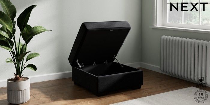 7.2.10 Buy Stamford Storage Footstool Fine Chenille Easy Clean Black Square Angle - Dark from the Next UK online shop Click here to use our accessible website