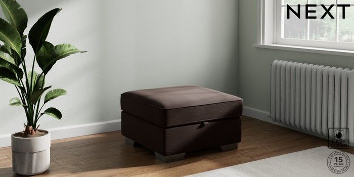 7.2.10 Buy Stamford Storage Footstool Fine Chenille Easy Clean Chocolate Brown Square Angle - Gunmetal from the Next UK online shop Click here to use our accessible website