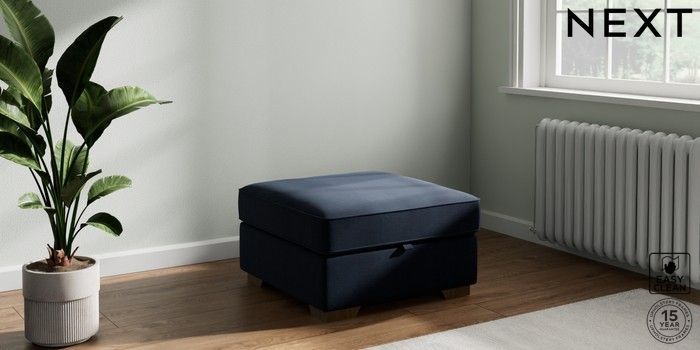 7.2.10 Buy Stamford Storage Footstool Fine Chenille Easy Clean Dark Navy Blue Square Angle - Mid from the Next UK online shop Click here to use our accessible website
