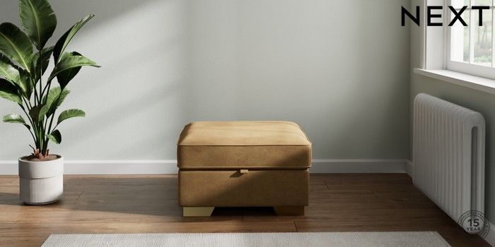 7.2.6 Buy Stamford Storage Footstool Luxe Chenille Honey Yellow Square Angle - Brushed Brass from the Next UK online shop Click here to use our accessible website