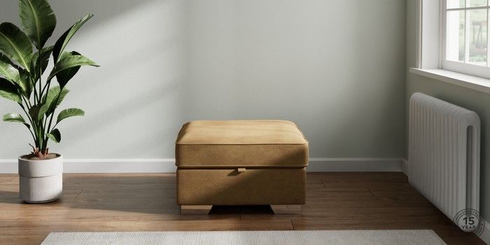 6.12.1 Buy Stamford Storage Footstool Luxe Chenille Honey Yellow Square Angle - Chrome Metal from the Next UK online shop Click here to use our accessible website