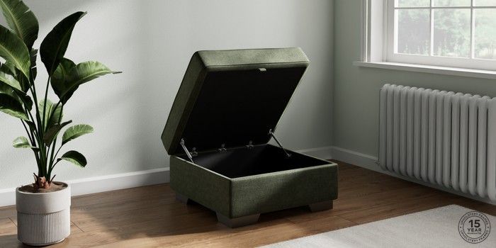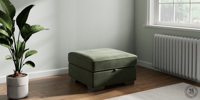 7.0.3 Buy Stamford Storage Footstool Luxe Chenille Mid Green Square Angle - Gunmetal from the Next UK online shop Click here to use our accessible website