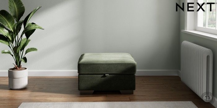 7.2.6 Buy Stamford Storage Footstool Luxe Chenille Mid Green Square Angle - Gunmetal from the Next UK online shop Click here to use our accessible website