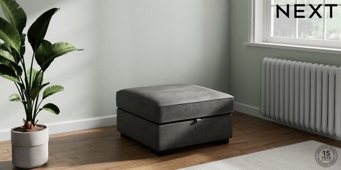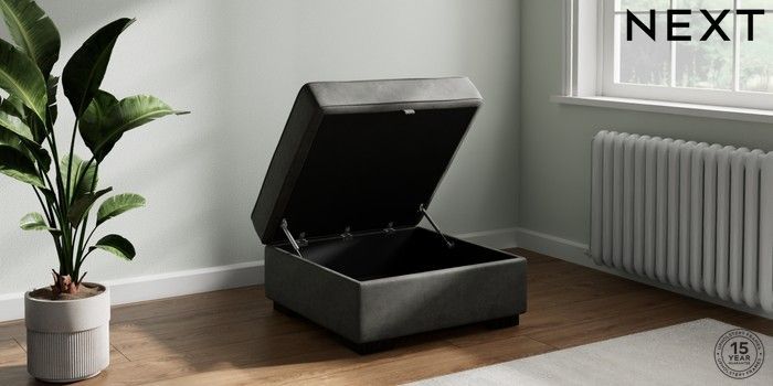 7.3.1 Buy Stamford Storage Footstool Monza Faux Leather Easy Clean Dark Grey Square Angle - Dark from the Next UK online shop Click here to use our accessible website