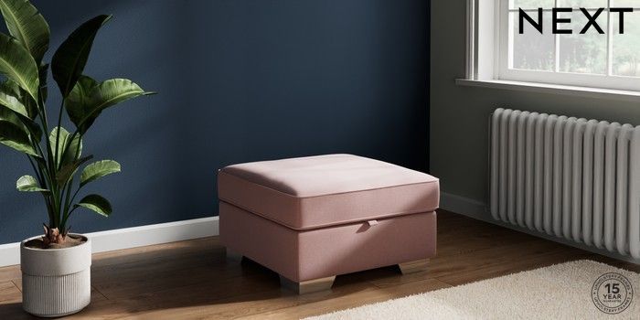 7.3.1 Buy Stamford Storage Footstool Natural Mix Light Rose Pink Square Angle - Chrome Metal from the Next UK online shop Click here to use our accessible website