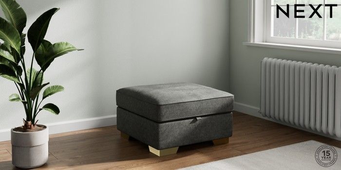 7.2.10 Buy Stamford Storage Footstool Plush Chenille Dark Grey Square Angle - Brushed Brass from the Next UK online shop Click here to use our accessible website