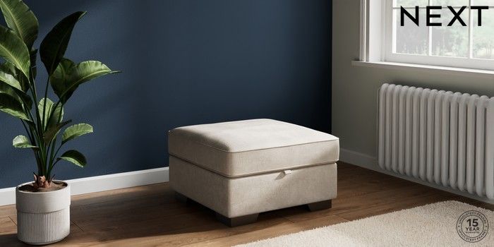 7.2.10 Buy Stamford Storage Footstool Plush Chenille Oyster Square Angle - Gunmetal from the Next UK online shop Click here to use our accessible website