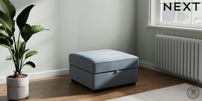 7.2.10 Buy Stamford Storage Footstool Relaxed Linen Look Mid Blue Square Angle - Dark from the Next UK online shop Click here to use our accessible website