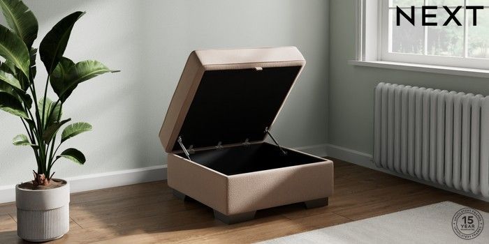 7.2.10 Buy Stamford Storage Footstool Relaxed Linen Look Mid Natural Square Angle - Gunmetal from the Next UK online shop Click here to use our accessible website