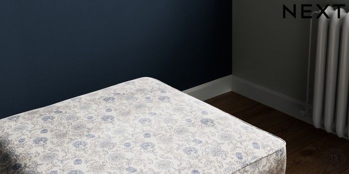 7.3.1 Buy Stamford Storage Footstool Relaxed Linen Look Print Woodblock Floral Blue Square Angle - Brushed Brass from the Next UK online shop Click here to use our accessible website