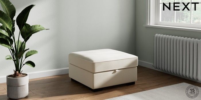 7.2.10 Buy Stamford Storage Footstool Ripple Chenille Mid Moss Green Square Angle - Dark from the Next UK online shop Click here to use our accessible website