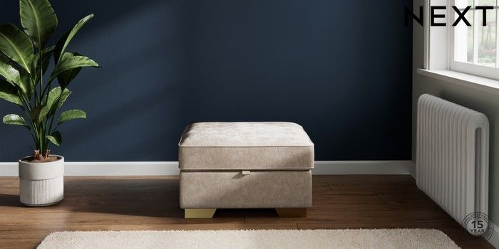 7.2.10 Buy Stamford Storage Footstool Distressed Velour Mid Natural Square Angle - Brushed Brass from the Next UK online shop Click here to use our accessible website