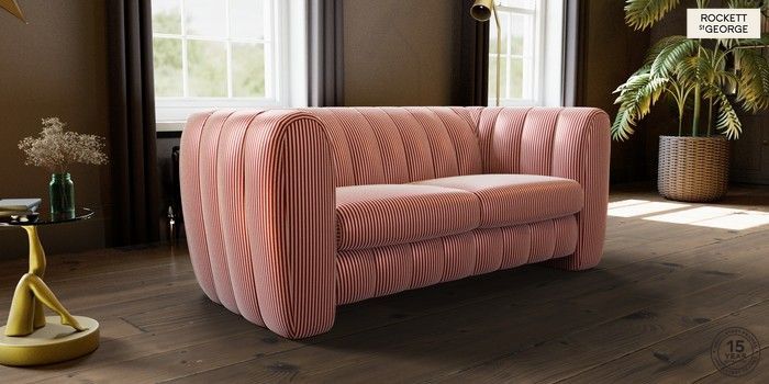 The Bowie sofa from Rockett St George has natural curve appeal. With it's beautifully smooth lines and scalloped finish, this bold and fearless seat is a stylish talking point that also delivers a sumptuously soft sit. Available in a selection of Rockett St George fabrics. Requires minimal assembly for feet.