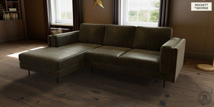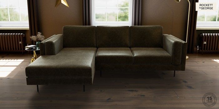 6.12.1 Buy The Grace by Rockett St George Medium Sofa Chaise - Left Hand Luxe Vintage Velvet Dark Olive Green Skinny - Black from the Next UK online shop Click here to use our accessible website