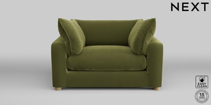 6.12.1 Buy The Sumptuous Deep Relaxed Sit 2 Seater Small Sofa Plush Velvet Easy Clean Mid Olive Green Low Tube - Light from the Next UK online shop Click here to use our accessible website
