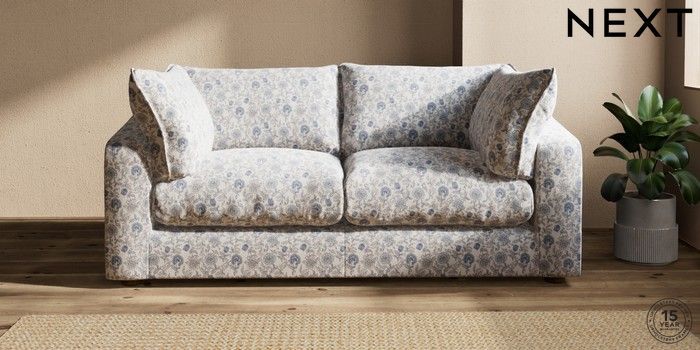 7.3.1 Buy The Sumptuous Deep Relaxed Sit 3 Seater Sofa Relaxed Linen Look Print Woodblock Floral Blue Low Tube - Mid from the Next UK online shop Click here to use our accessible website