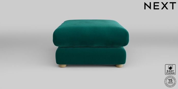 6.12.1 Buy The Sumptuous Deep Relaxed Sit Footstool Plush Velvet Easy Clean Juniper Green Low Tube - Light from the Next UK online shop Click here to use our accessible website