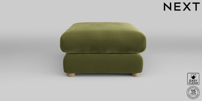 6.12.1 Buy The Sumptuous Deep Relaxed Sit Footstool Plush Velvet Easy Clean Mid Olive Green Low Tube - Light from the Next UK online shop Click here to use our accessible website