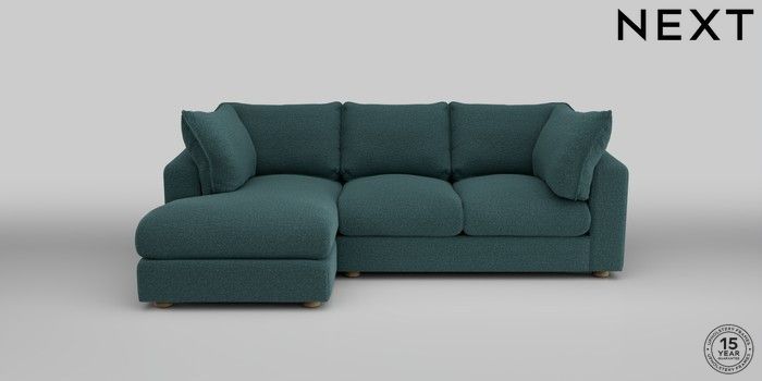 6.12.1 Buy The Sumptuous Deep Relaxed Sit Medium Sofa Chaise - Left Hand Chunky Chenille Mid Teal Green Low Tube - Light from the Next UK online shop Click here to use our accessible website