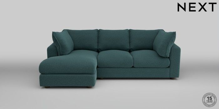 6.12.1 Buy The Sumptuous Deep Relaxed Sit Medium Sofa Chaise - Left Hand Chunky Chenille Mid Teal Green Low Tube - Mid from the Next UK online shop Click here to use our accessible website