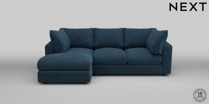 6.12.1 Buy The Sumptuous Deep Relaxed Sit Medium Sofa Chaise - Left Hand Cotswold Chenille Dark Blue Low Tube - Mid from the Next UK online shop Click here to use our accessible website