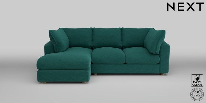 6.12.1 Buy The Sumptuous Deep Relaxed Sit Medium Sofa Chaise - Left Hand Fine Chenille Easy Clean Dark Juniper Green Low Tube - Light from the Next UK online shop Click here to use our accessible website