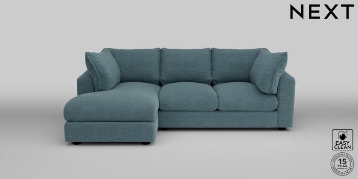 6.12.1 Buy The Sumptuous Deep Relaxed Sit Medium Sofa Chaise - Left Hand Fine Chenille Easy Clean Mid Blue Low Tube - Dark from the Next UK online shop Click here to use our accessible website