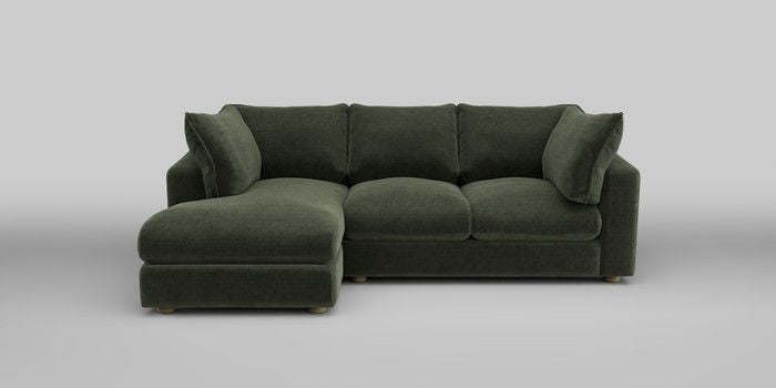 7.0.3 Buy The Sumptuous Deep Relaxed Sit Medium Sofa Chaise - Left Hand Luxe Chenille Mid Green Low Tube - Light from the Next UK online shop Click here to use our accessible website