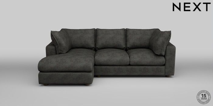 6.12.1 Buy The Sumptuous Deep Relaxed Sit Medium Sofa Chaise - Left Hand Monza Faux Leather Easy Clean Dark Grey Low Tube - Mid from the Next UK online shop Click here to use our accessible website