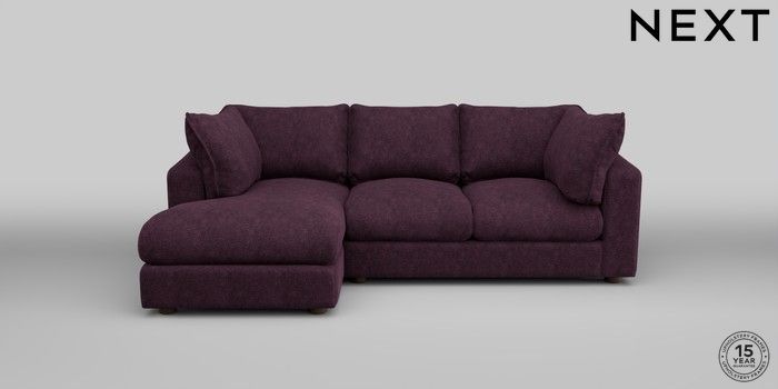 6.12.1 Buy The Sumptuous Deep Relaxed Sit Medium Sofa Chaise - Left Hand Plush Chenille Dark Plum Purple Low Tube - Mid from the Next UK online shop Click here to use our accessible website