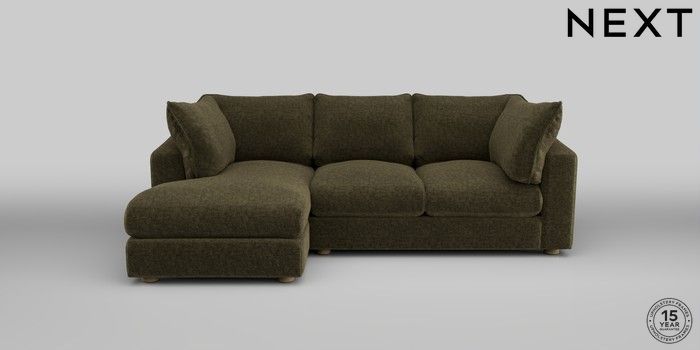 6.12.1 Buy The Sumptuous Deep Relaxed Sit Medium Sofa Chaise - Left Hand Plush Chenille Moss Green Low Tube - Light from the Next UK online shop Click here to use our accessible website