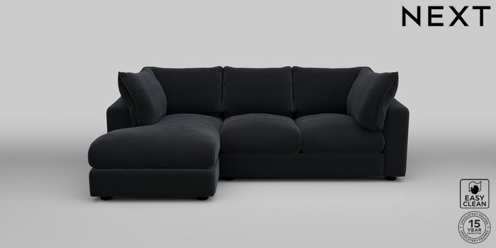 6.12.1 Buy The Sumptuous Deep Relaxed Sit Medium Sofa Chaise - Left Hand Plush Velvet Easy Clean Charcoal Grey Low Tube - Dark from the Next UK online shop Click here to use our accessible website