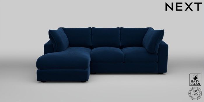 6.12.1 Buy The Sumptuous Deep Relaxed Sit Medium Sofa Chaise - Left Hand Plush Velvet Easy Clean Navy Blue Low Tube - Dark from the Next UK online shop Click here to use our accessible website