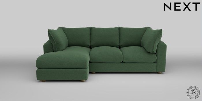 6.12.1 Buy The Sumptuous Deep Relaxed Sit Medium Sofa Chaise - Left Hand Relaxed Linen Look Dark Green Low Tube - Light from the Next UK online shop Click here to use our accessible website