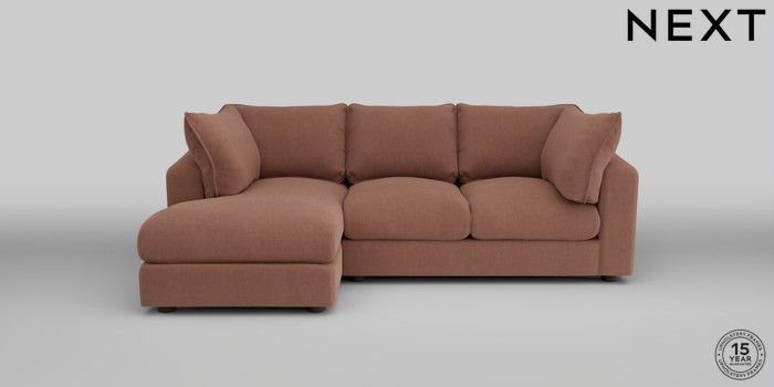 6.12.1 Buy The Sumptuous Deep Relaxed Sit Medium Sofa Chaise - Left Hand Relaxed Linen Look Light Rust Brown Low Tube - Mid from the Next UK online shop Click here to use our accessible website