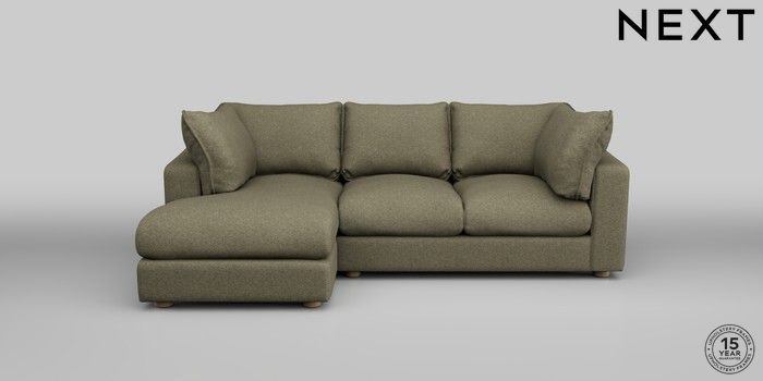 6.12.1 Buy The Sumptuous Deep Relaxed Sit Medium Sofa Chaise - Left Hand Tweedy Chenille Mid Moss Green Low Tube - Light from the Next UK online shop Click here to use our accessible website