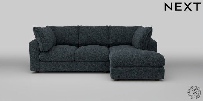 6.12.1 Buy The Sumptuous Deep Relaxed Sit Medium Sofa Chaise - Right Hand Chunky Chenille Dark Navy Blue Low Tube - Mid from the Next UK online shop Click here to use our accessible website