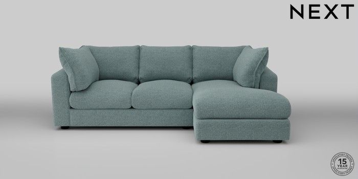 6.12.1 Buy The Sumptuous Deep Relaxed Sit Medium Sofa Chaise - Right Hand Chunky Chenille Light Teal Green Low Tube - Dark from the Next UK online shop Click here to use our accessible website