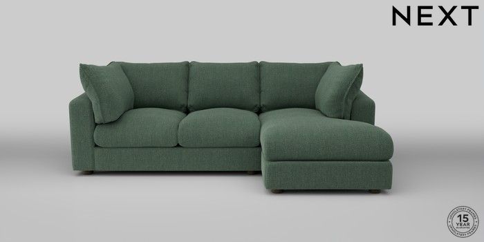 6.12.1 Buy The Sumptuous Deep Relaxed Sit Medium Sofa Chaise - Right Hand Chunky Texture Mid Forest Green Low Tube - Mid from the Next UK online shop Click here to use our accessible website