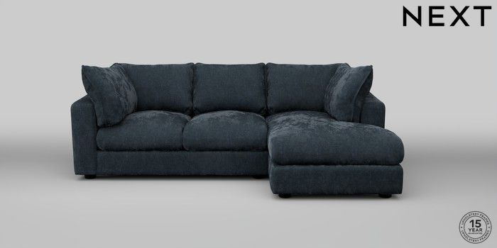 6.12.1 Buy The Sumptuous Deep Relaxed Sit Medium Sofa Chaise - Right Hand Distressed Velour Midnight Blue Low Tube - Dark from the Next UK online shop Click here to use our accessible website