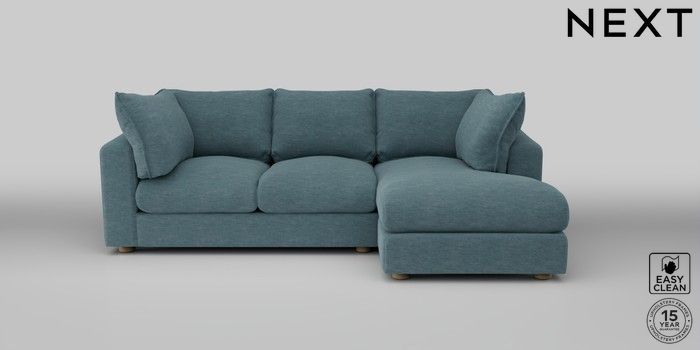 6.12.1 Buy The Sumptuous Deep Relaxed Sit Medium Sofa Chaise - Right Hand Fine Chenille Easy Clean Mid Blue Low Tube - Light from the Next UK online shop Click here to use our accessible website