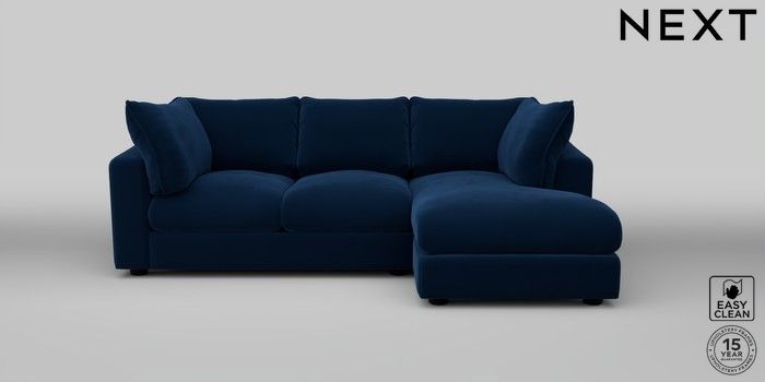 6.12.1 Buy The Sumptuous Deep Relaxed Sit Medium Sofa Chaise - Right Hand Plush Velvet Easy Clean Navy Blue Low Tube - Dark from the Next UK online shop Click here to use our accessible website